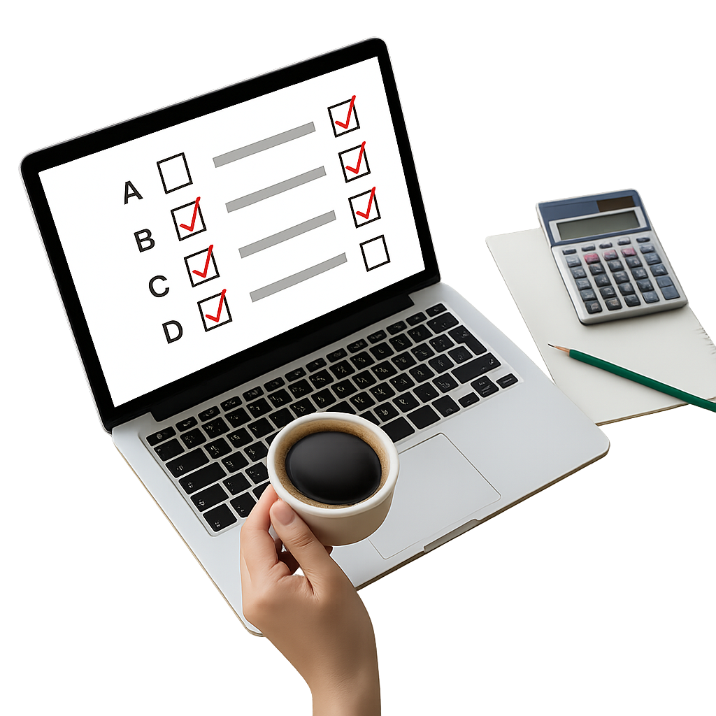 جاهزية الامتحان الفعلي: اختبارات تجريبية زمنية، بنك أسئلة بنمط MCQ، تحليلات للأداء، وإرشاد خبراء.